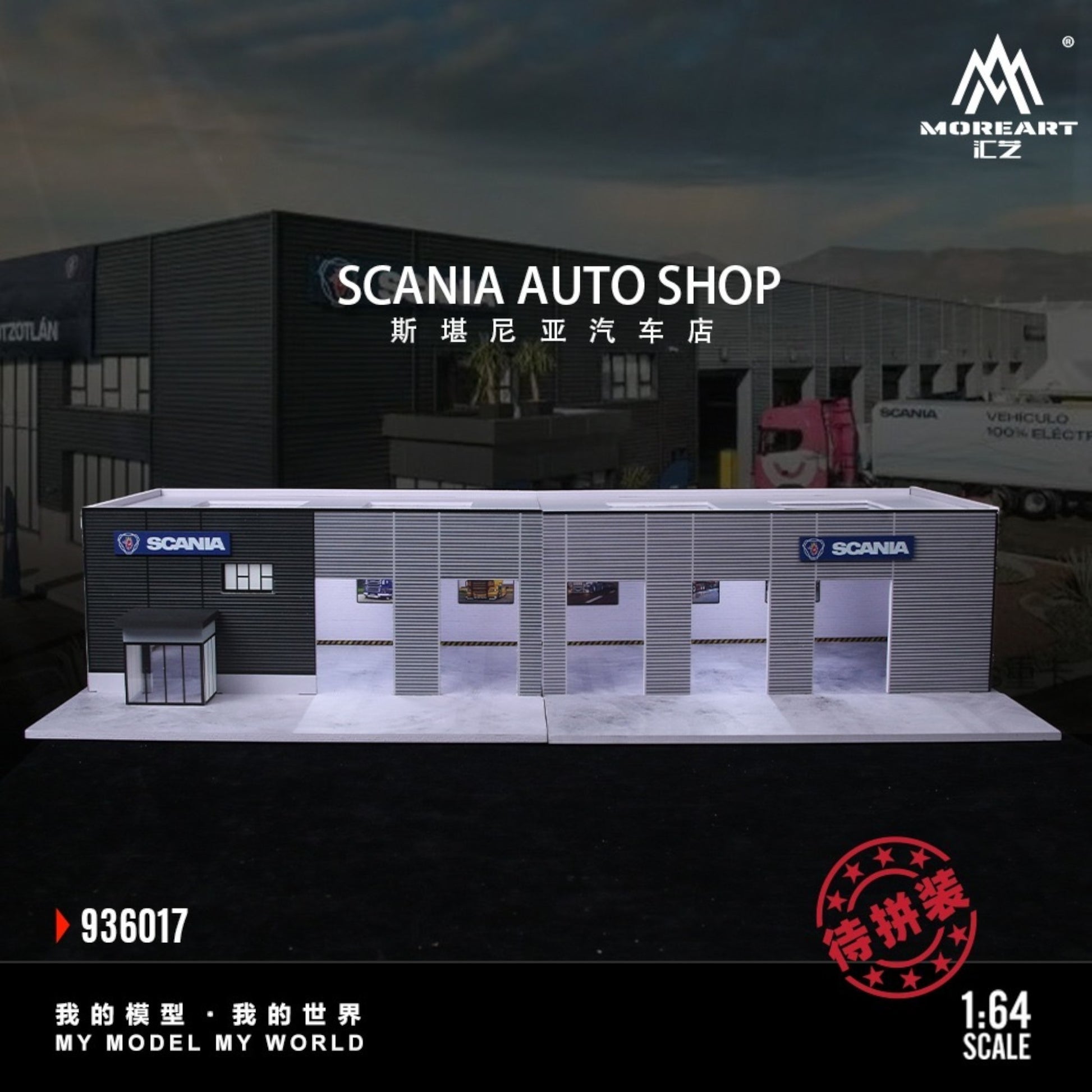 MoreArt - Pre-Order - Scania Car Store Diorama mit Beleuchtung 60x30x12,5cm - MO936017